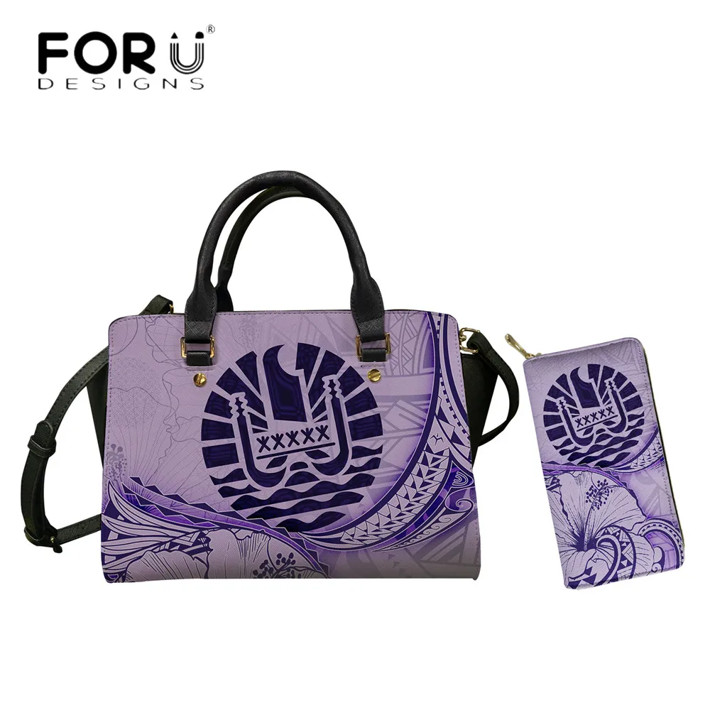 Лидер продаж, женские сумки FORUDESIGNS из искусственной кожи с принтом Таити, гибискус, полинезийский принт, 2 шт., повседневные сумки-тоуты, сумочка, кошелек