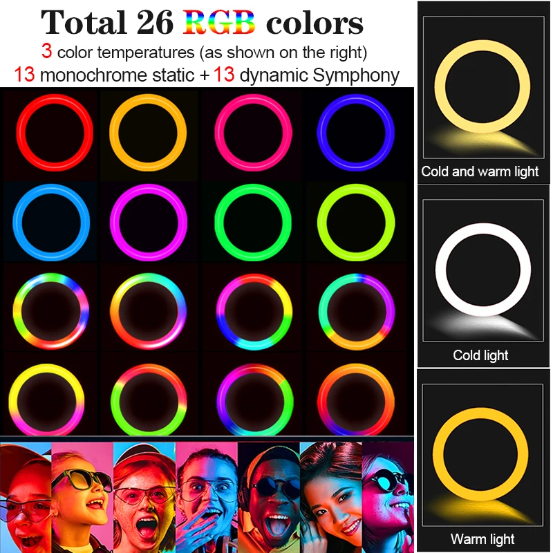 1. Подходит для многих социальных случаев, таких как макияж, видео Live, студийный светильник, фотография.2. Светильник для съемок еды/Косметика Макияж видео Лампа для съемок/популярный короткий светильник для видеосъемки3. Светильник с регулируемой яркостью 3 цветов с треногой/рекламный кольцевой светильник для съемки/Медиа видео Youtube4. Светильник для съемки с штативом/наружная фотосъемка/маникюр/просмотр телевизора5. Кольцевой светильник RGB подходит для многих социальных целей, таких как создание, видео в режиме реального времени, студийный светильник для фотосъемки.