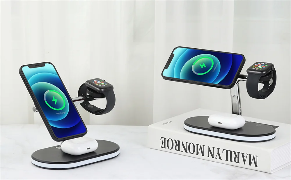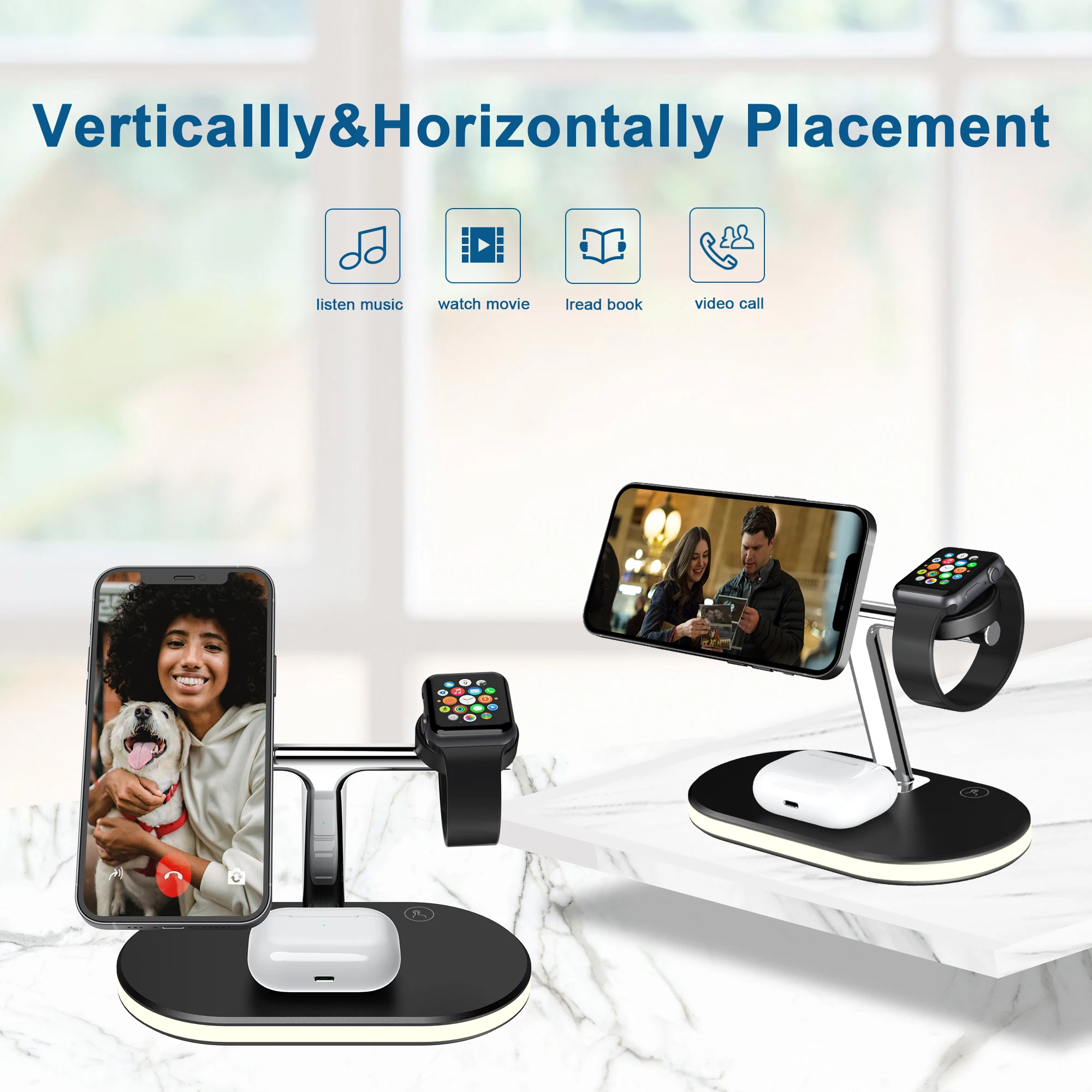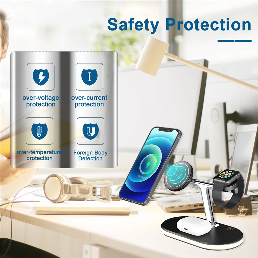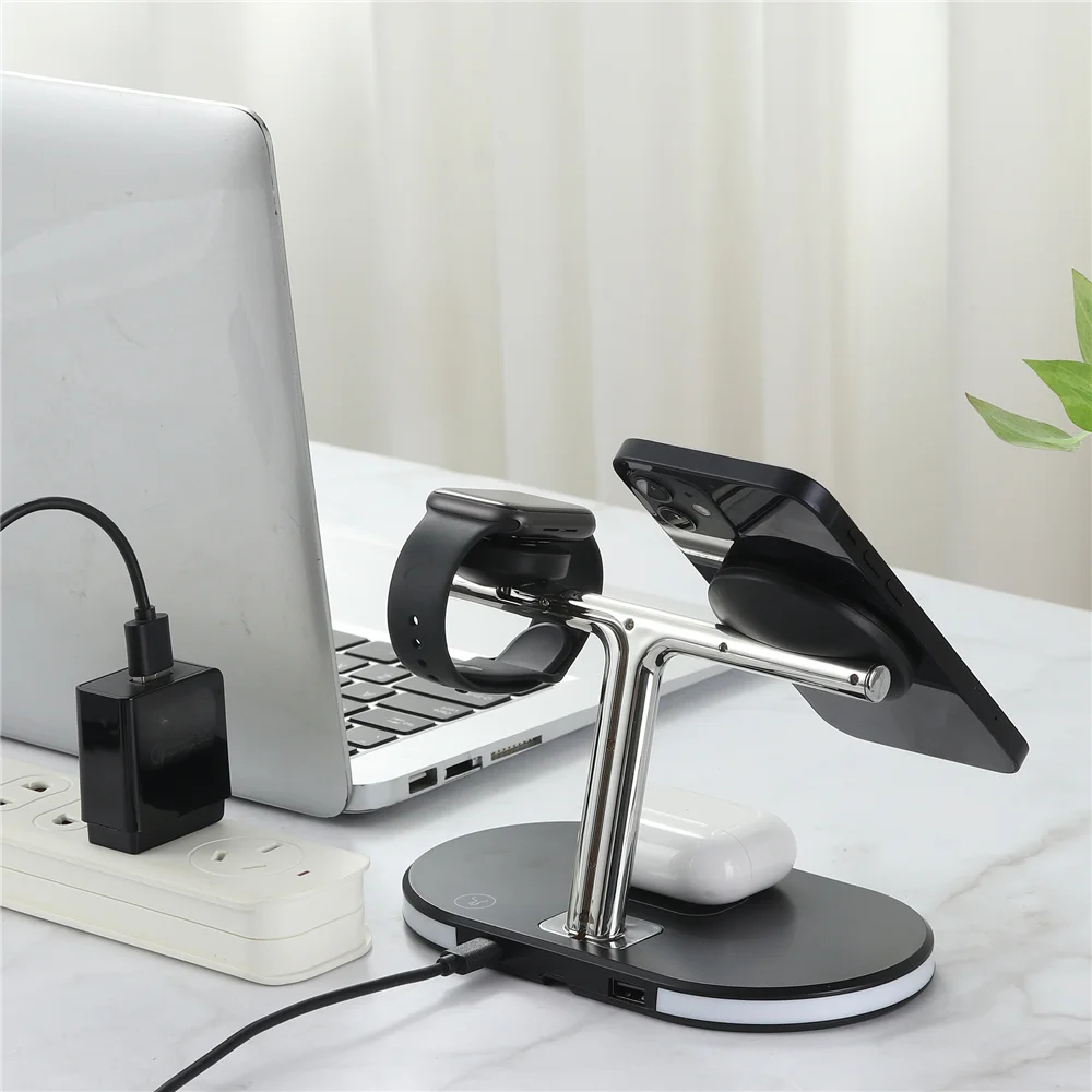 Беспроводное зарядное устройство Qi, 15 Вт, подставка для iPhone 12 12mini 13, магнитное зарядное устройство, подставка для быстрой беспроводной зарядки для Apple Watch Airpods Pro
