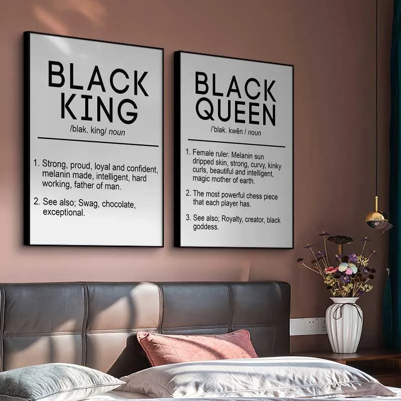 Черный король и королева стены художественный постер печать Цитата спальня меланин современный холст живопись черный красота украшение домашняя картина
