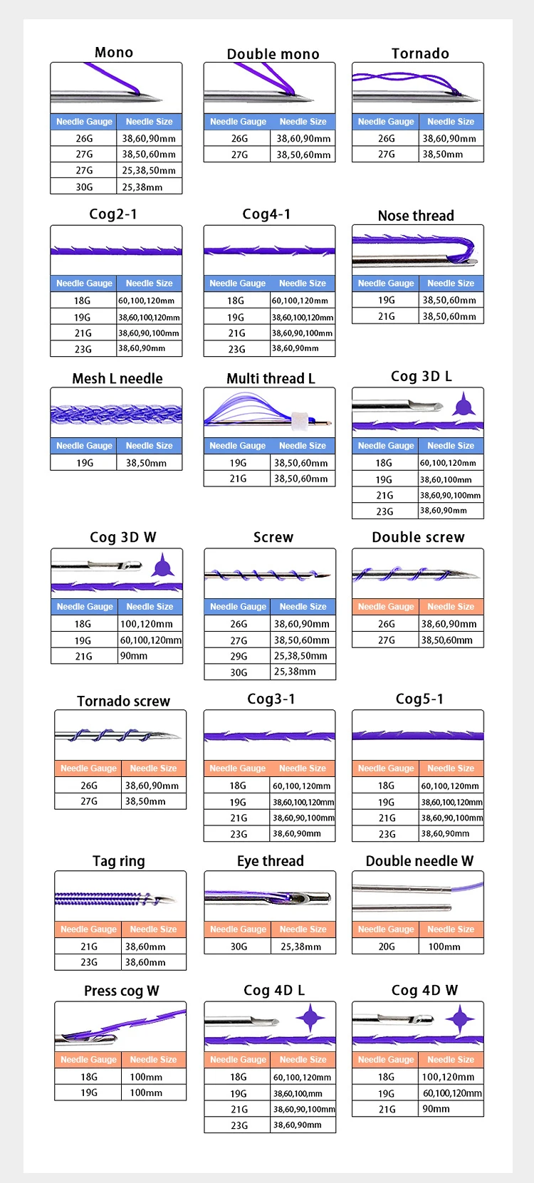 Стерильная Pdo-нить для подтяжки кожи и увеличения губ моновинтТорнадо-винт для глаз и носа 20 цветов