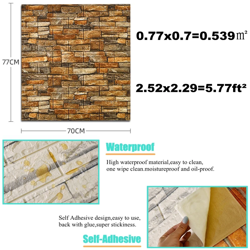 Добро пожаловать У нас есть профессиональная команда, Поддержка оптовой и розничной торговли, Наш принцип обслуживания-это обслуживание клиентов, теплое. Таким образом, вы будете удовлетворены всем процессом покупок. Материал: пена XPe Размер изделия: 70*77 см за штуку. 0,539 квадратных метров 70*38 см за штуку. 0,266 квадратных метров Стиль настенной наклейки: 3D наклейки на стену, продукт поставляется с клеем Характеристика: 1: трехмерная декоративная мягкая пена, защита от столкновений для детей, забота о вашей семье. 2: Безопасность и защита окружающей среды, нетоксичный запах, подходит для семейного безопасного домашнего пространства. 3: Реалистичный, естественный эффект кирпичного узора, простой и современный стиль. 4: Бесплатный DIY, простой самоклеящийся дизайн, установка, повседневный коллаж, произвольный крой. 5: сравнение обоев с улучшенным эффектом шумоподавления. Способы установки и инструменты: Подготовка: Очистите поверхность с адгезией, например: поверхность из дерева, поверхность из стекла, не Пылезащитная стена, нажмите на дно шпатлевки и так далее. Паста: на заднюю крышку разорвана бумага, приклеенная К вспомогательным инструментам: ножницы, нож Внимание: пожалуйста, купите достаточное количество единиц товара, чтобы убедиться, что они поставляются из одной партии, чтобы избежать разницы в цвете.