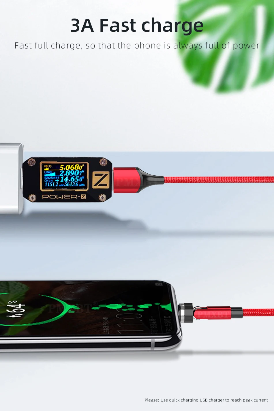 Магнитный кабель Micro USB Type-C с поворотом на 540 градусов, шнур для быстрой зарядки и передачи данных 3 А для iPhone, Huawei мобильный телефон, провод для быстрой зарядки 2 м