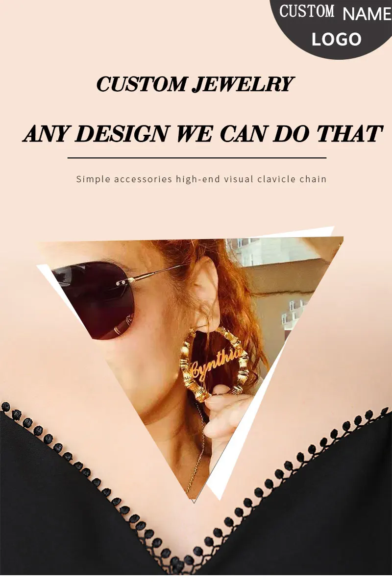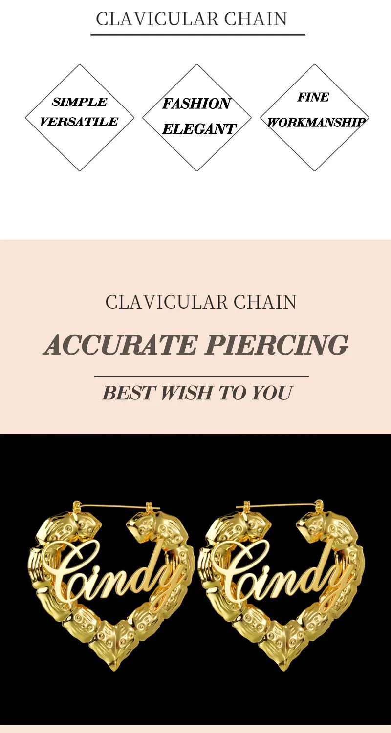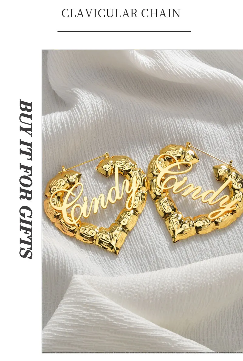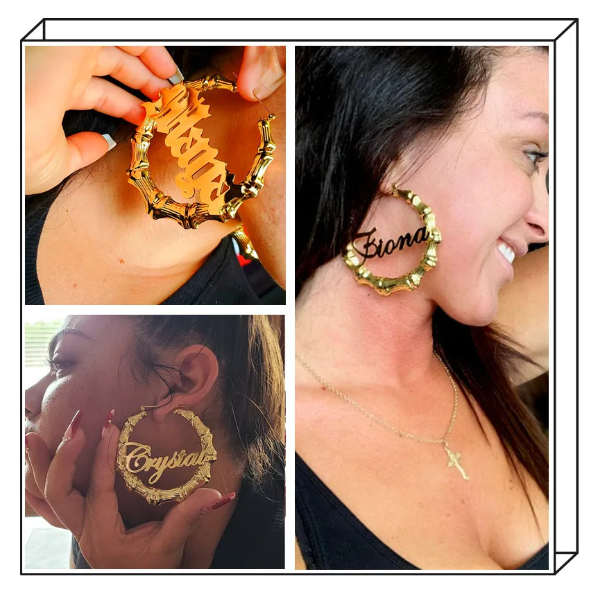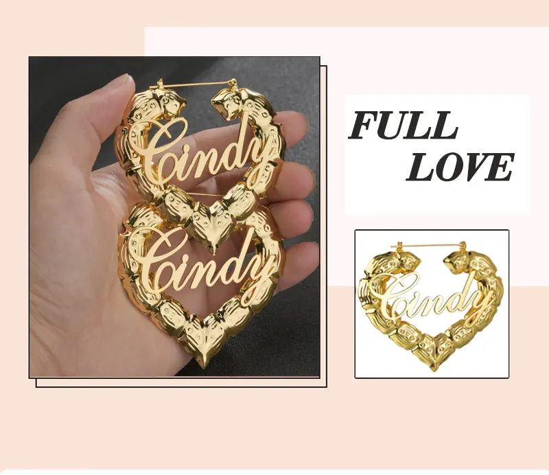 Круглые Бамбуковые серьги в стиле хип-хоп с бамбуковым сердцем и именем на заказ, кольца с персонализированными буквами в стиле панк, серьги-гвоздики, украшения, подарки