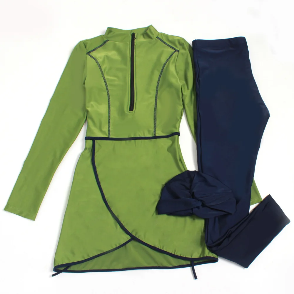 Мусульманский купальник 3 шт., Женский скромный хиджаб в стиле пэчворк, спортивный купальник с длинными рукавами, одежда для плавания в мусульманском стиле, 2021