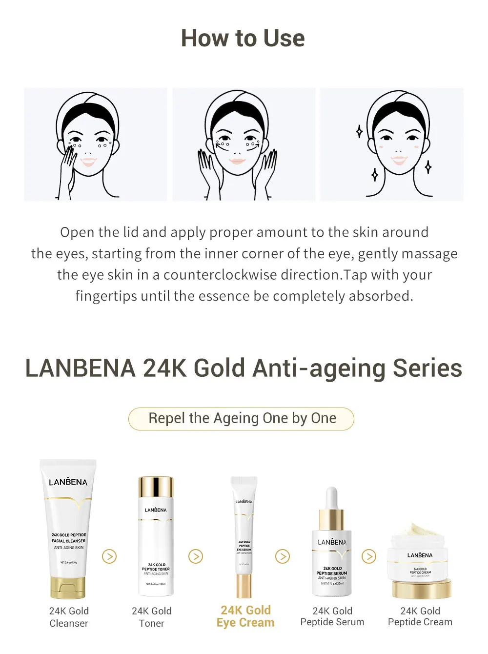 Серия Lanbena 24K Gold Anti-ageingПовторите старение один за другимОчищающее средство> тонер> крем для глаз> оригинальная жидкость> крем для лица