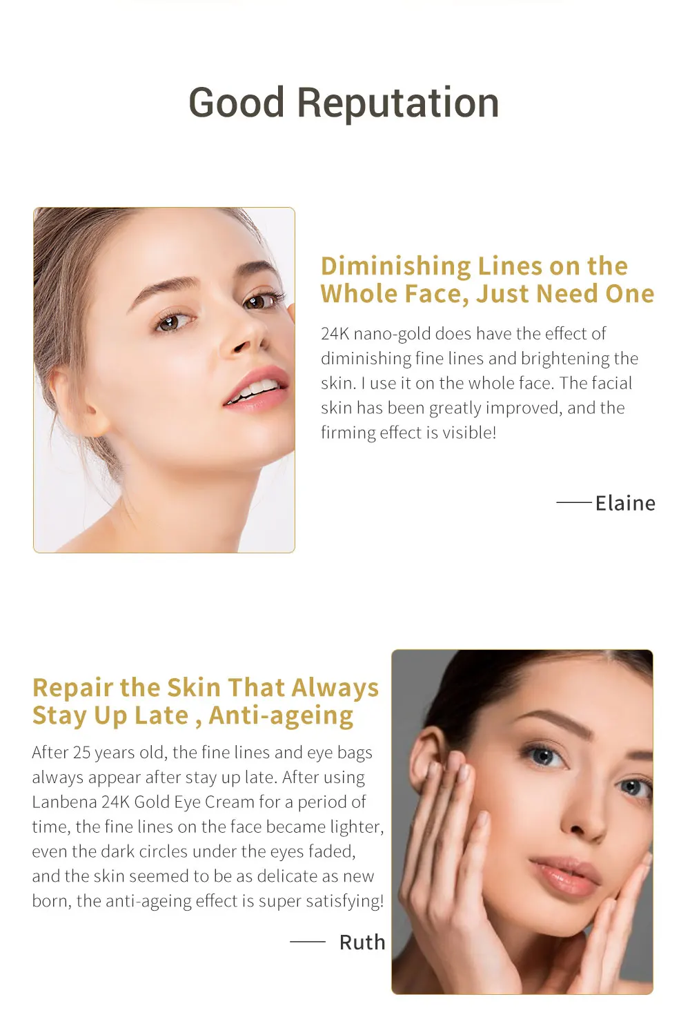 Гель-светильникВоспроизводите яркие глазаНикогда не беспокойтесь о жировых гранулахУлучшение проблем с глазами в течение 28 дней *Откажитесь от времени86%Тестер плотнее90%Тестер почувствует выцветшие морщины94%Тестер ярче на ощупь* Данные от пользователей LANBENA, и эффект может варьироваться в зависимости от людейХорошая репутацияУменьшающие линии на всем лице, просто нужен один24K нано-золото имеет эффект уменьшения тонких линий и осветления кожи. Я использую его по всему лицу. Кожа лица была значительно улучшена, и укрепляющий эффект виден!--- ЭлейнВосстанавливает кожу, которая всегда задерживается, защищает от старенияПосле 25 лет, тонкие линии и мешки для глаз всегда появляются после того, как Задержитесь. После использования крема для глаз Lanbena 24K Gold в течение определенного периода времени, тонкие линии на лице стали светлее, даже темные круги под глазами поблекли, И кожа выглядела так же деликатной, как и новорожденная, эффект против старения очень приятный!--- Руфь