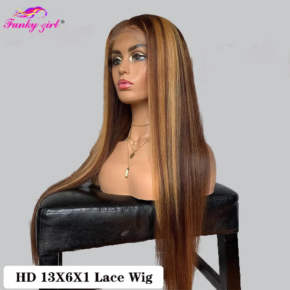 180% прямые волосы с эффектом омбре, бразильский парик на сетке спереди, прозрачные парики из человеческих волос спереди, медовые светлые неповрежденные волосы для женщин