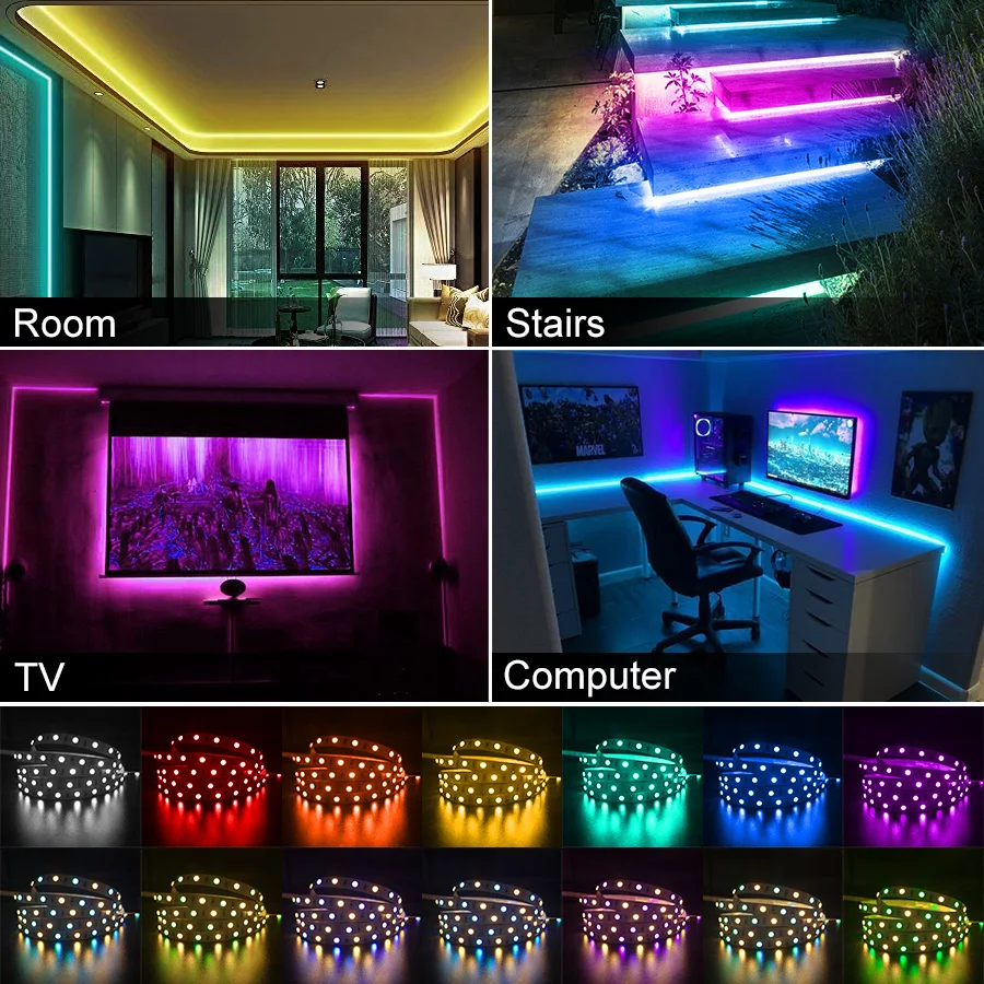 Светодиодная лента 5050 RGB, управление через приложение, 5 м, 10 м...