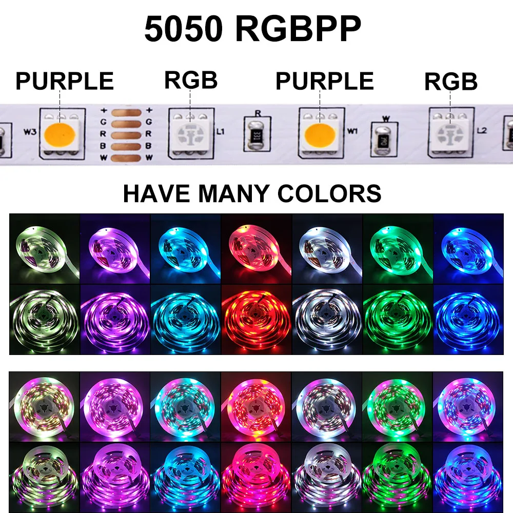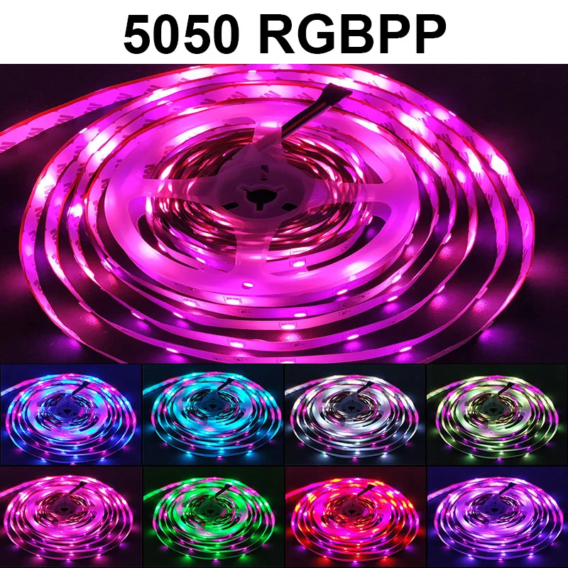 Светодиодная лента 5050 SMD RGB RGBPink (RGB + Pink) RGBWW (RGB + теплый белый) RGBCCT, гибкая LED полоска для дома, 5 м, светодиоды