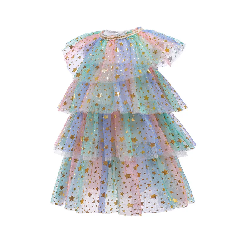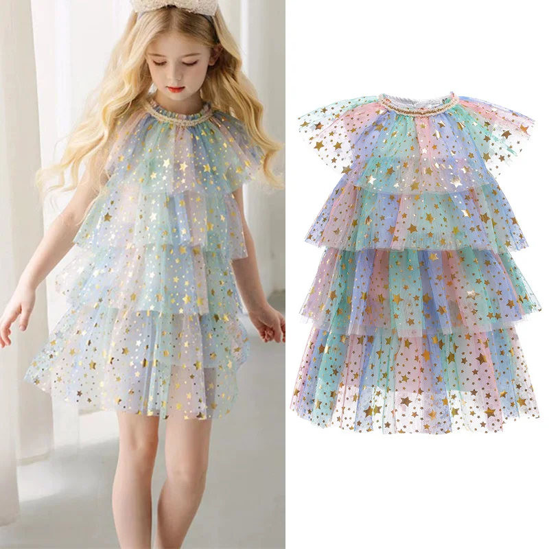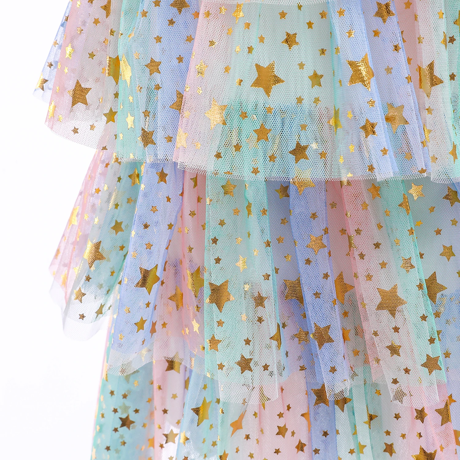 Платье принцессы для девочек, с оборками, из тюля, со звездами и блестками