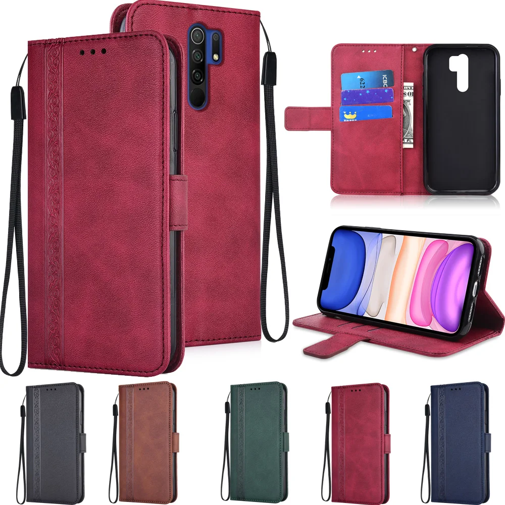 Кожаный чехол-бумажник с откидной крышкой для Xiaomi Redmi 9 9A 9C ...