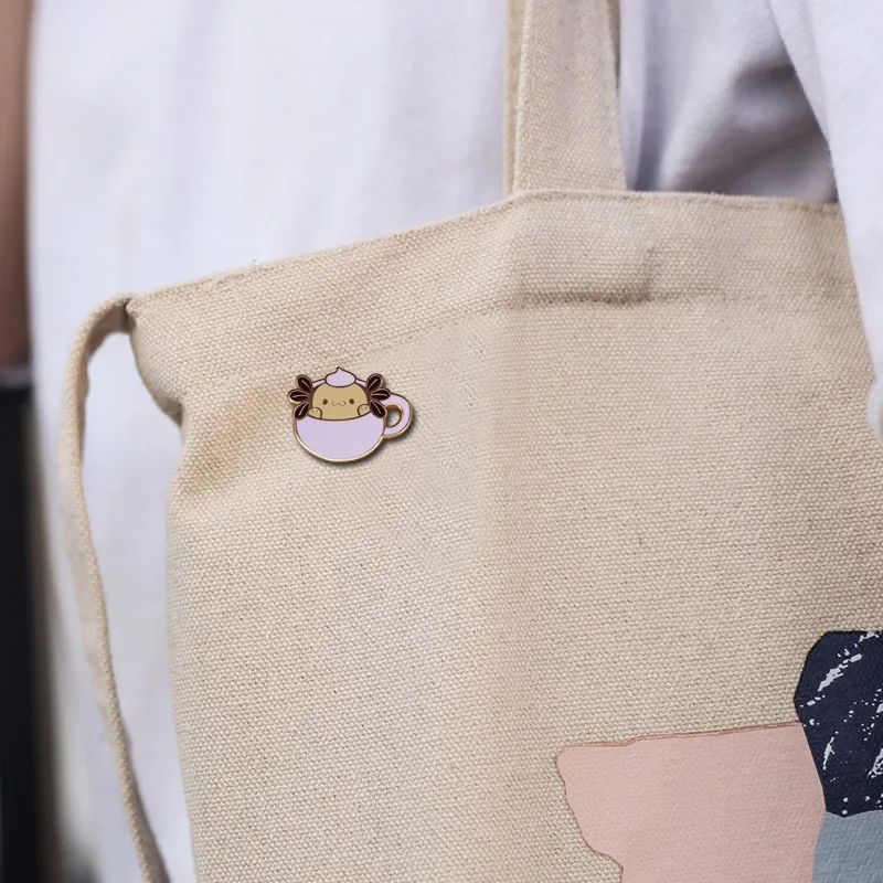 Kawaii Axolotl эмалированная булавка Шестигранная брошь с рыбой амф...