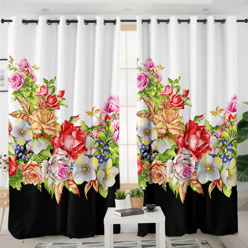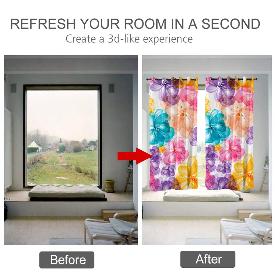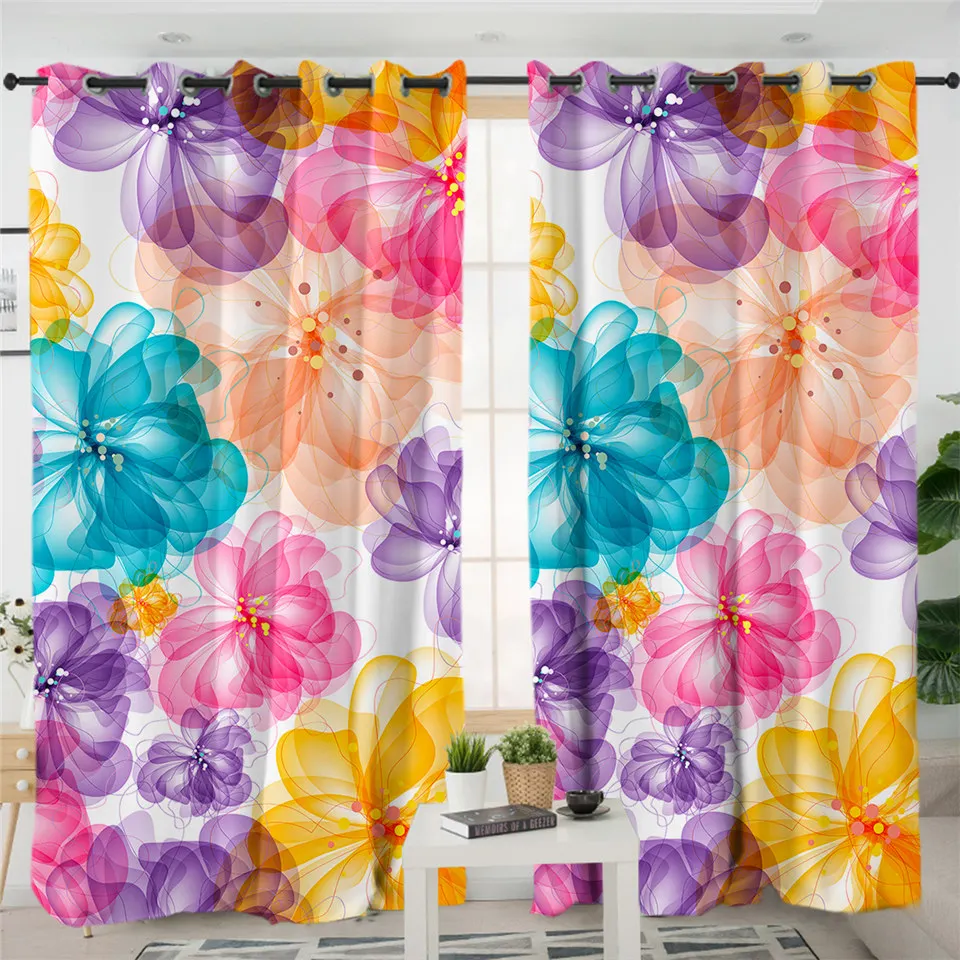 Занавески с цветами, цветные занавески для спальни, 3d принты, цветочные затемненные занавески, элегантные портьеры для окон, 1 шт.