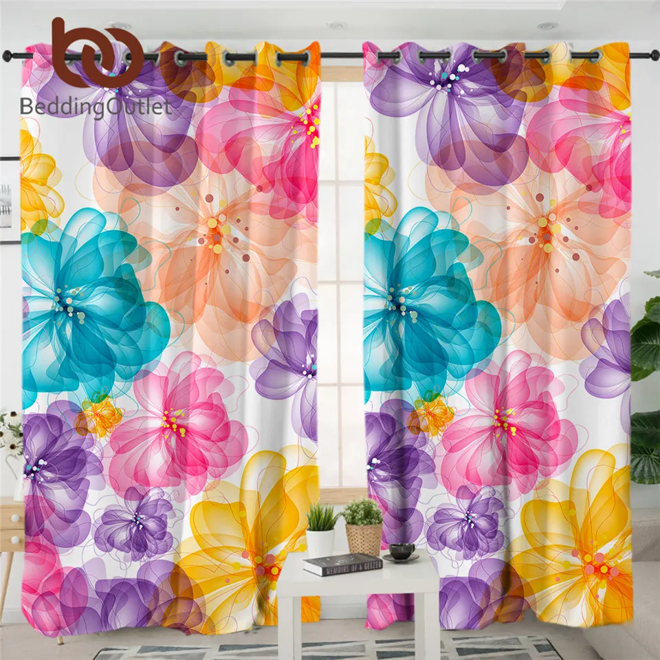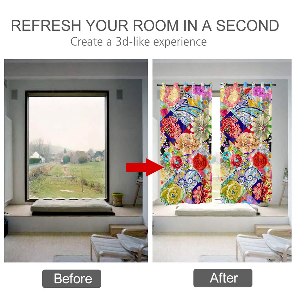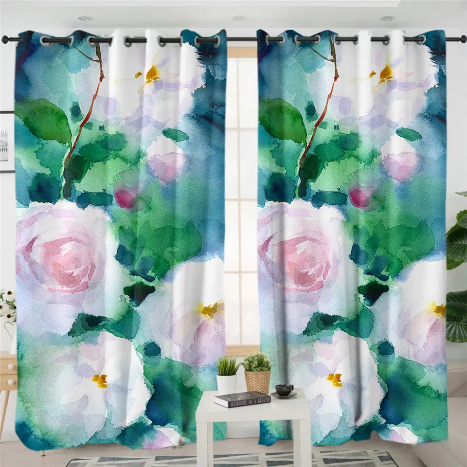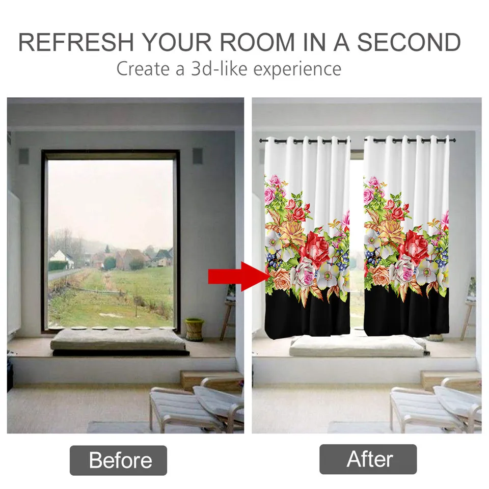 Занавески с цветами, цветные занавески для спальни, 3d принты, цветочные затемненные занавески, элегантные портьеры для окон, 1 шт.