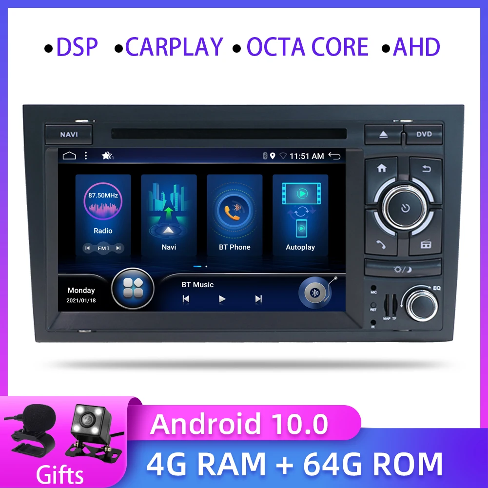 Bosion Octa Core 2 din Android 10 автомобильный DVD-плеер для Audi A4 B8 B7 B6 S4 RS4 B7 SEAT Exeo автомобильное радио GPS навигация carplay DSP