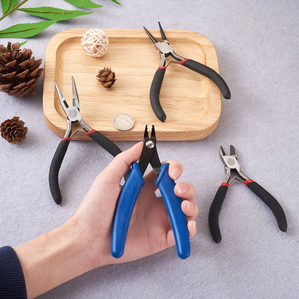 4 шт ювелирные инструменты набор карбоновых Сталь ювелирные изделия обжимные плоскогубцы с круглым носом плоскогубцы игла для носа Бокорезы для ручного изготовления
