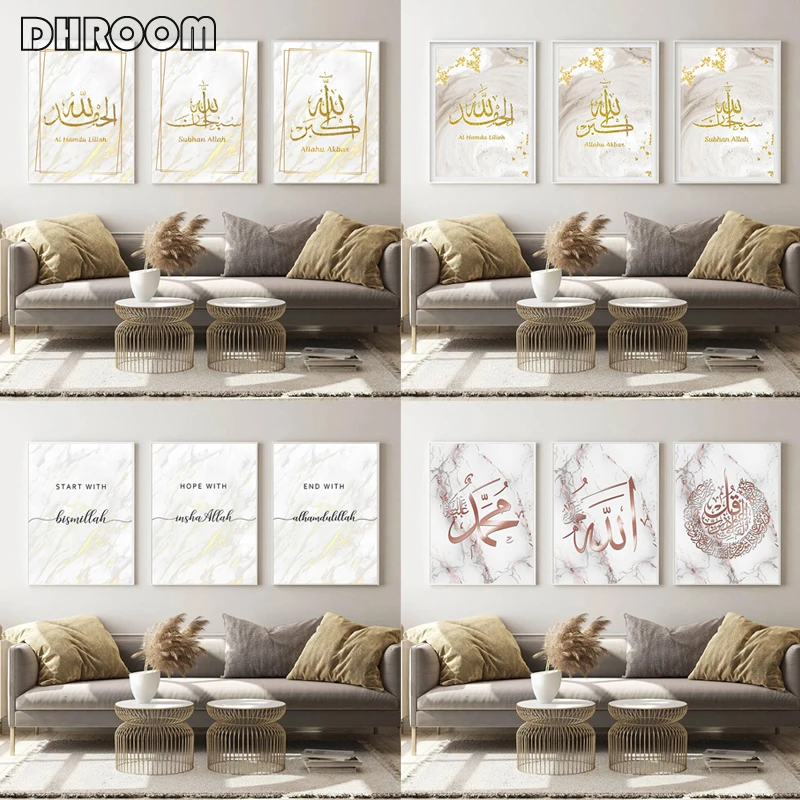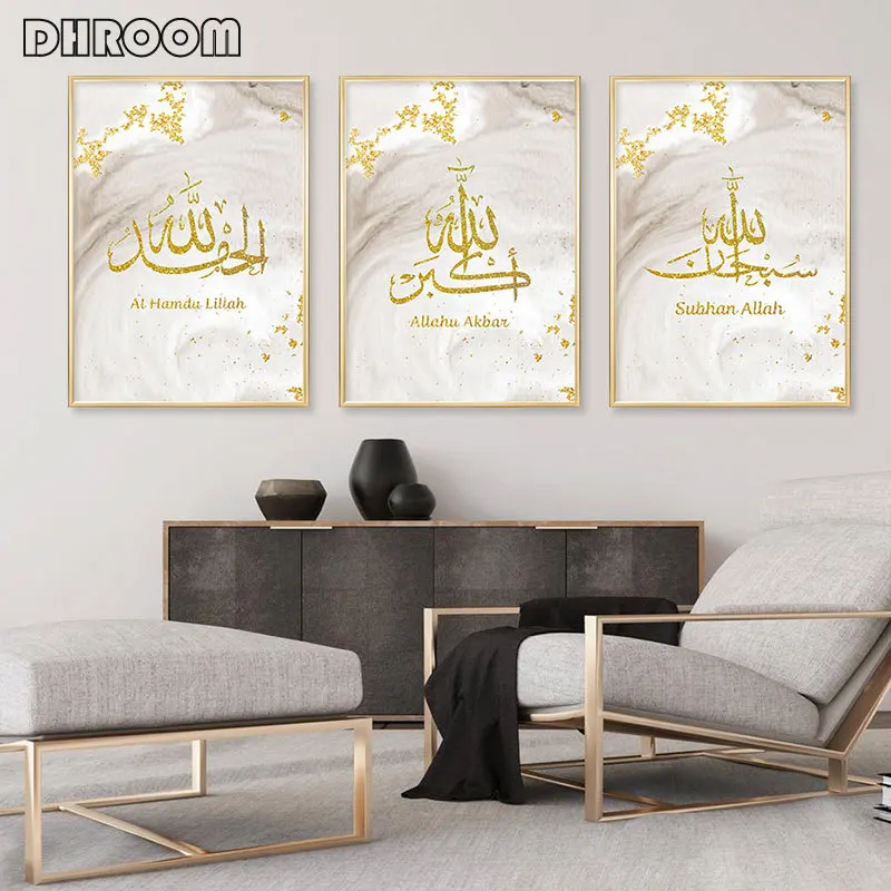 Мусульманский золотистый мрамор Bismillah, современный холст, искус...