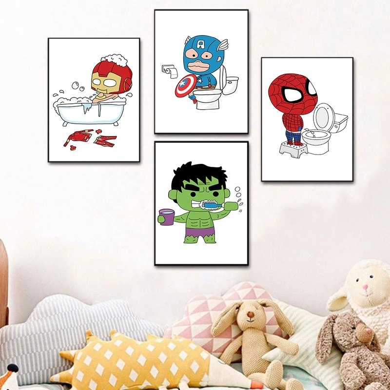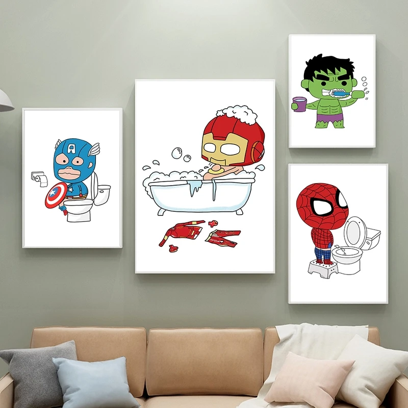 Забавные мультяшные комиксы Марвел супергерой Человек-паук Железный человек ванная Холст Картина смешной постер детская комната роспись Декор