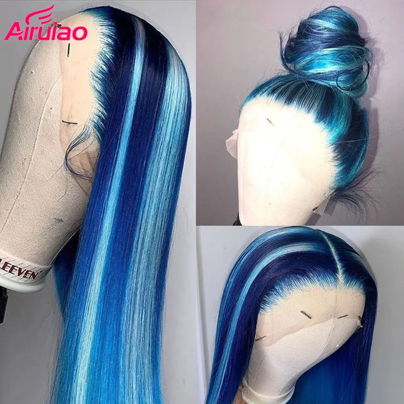 Парик из натуральных волос светло-голубого цвета, 13 х6, бордовый, с защитой от деграде, прозрачный, красный, оранжевый