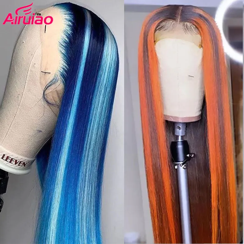 Голубой имбирный фронтальный парик с Омбре бордовый предварительно выщипанный HD прозрачный парик из человеческих волос на шнурке красный оранжевый полный 13x6x2