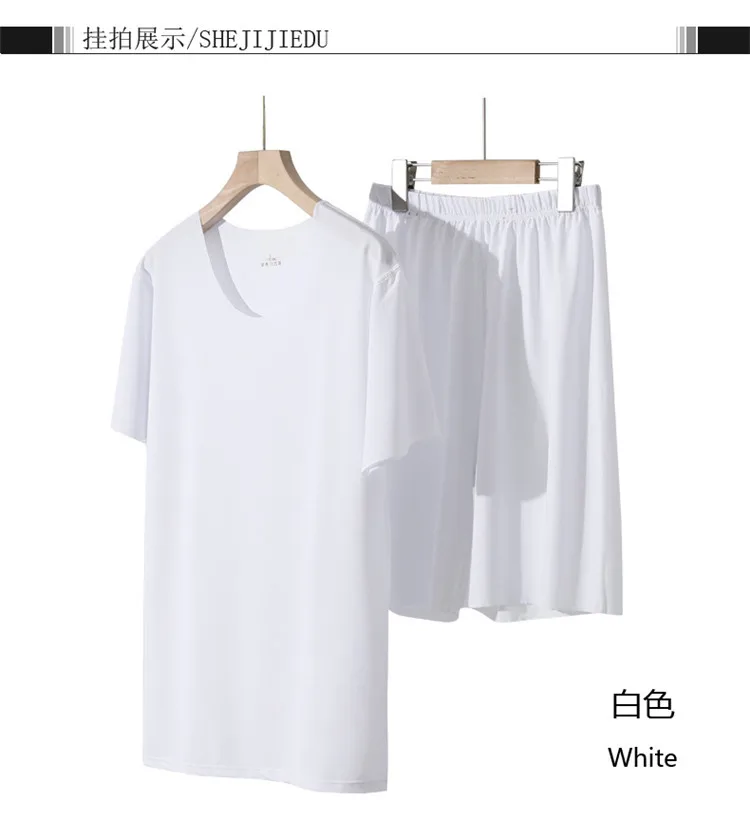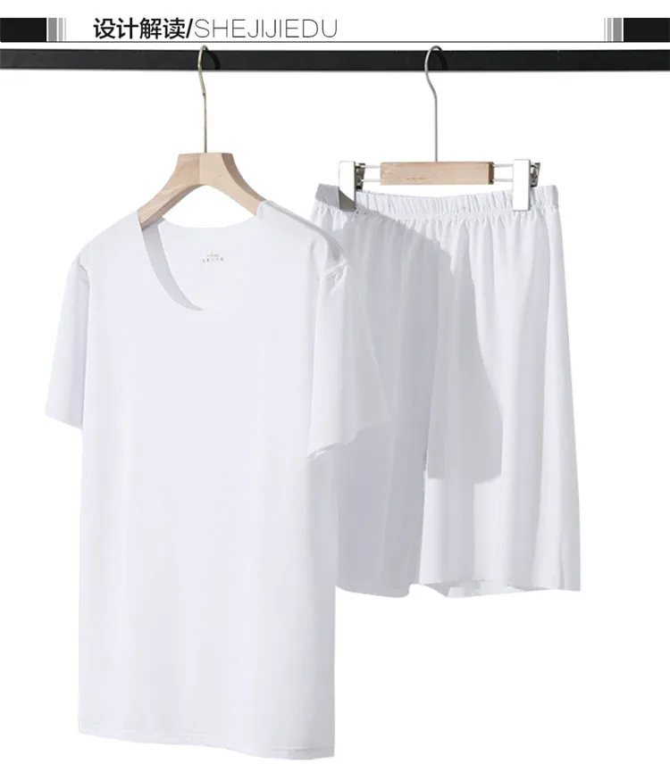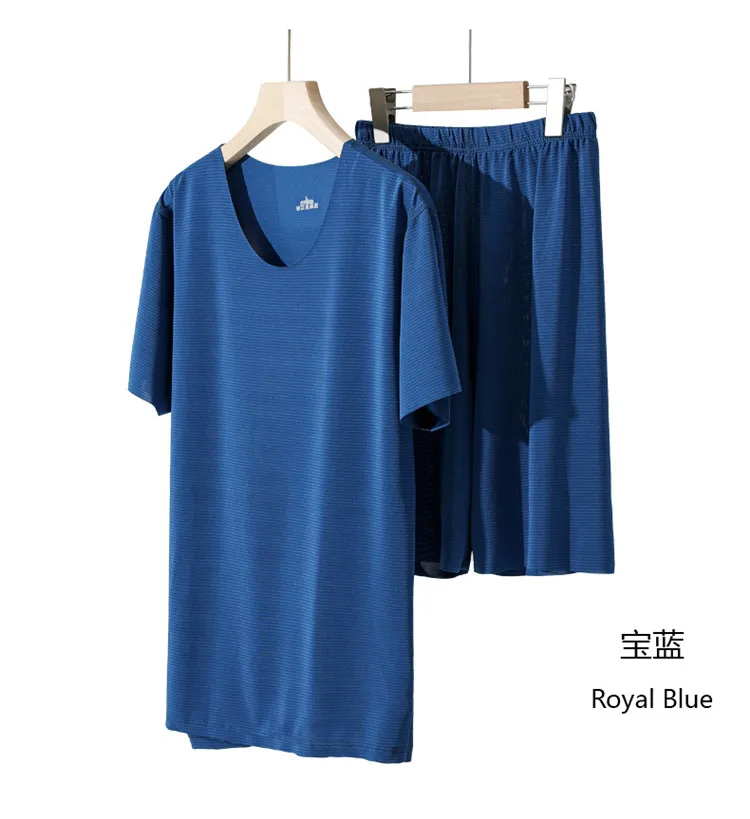 Мужская быстросохнущая Пижама, комплект из 2 предметов, Спортивная Повседневная Домашняя одежда, тонкая дышащая футболка из вискозы с коротким рукавом, одежда для сна, лето 2022