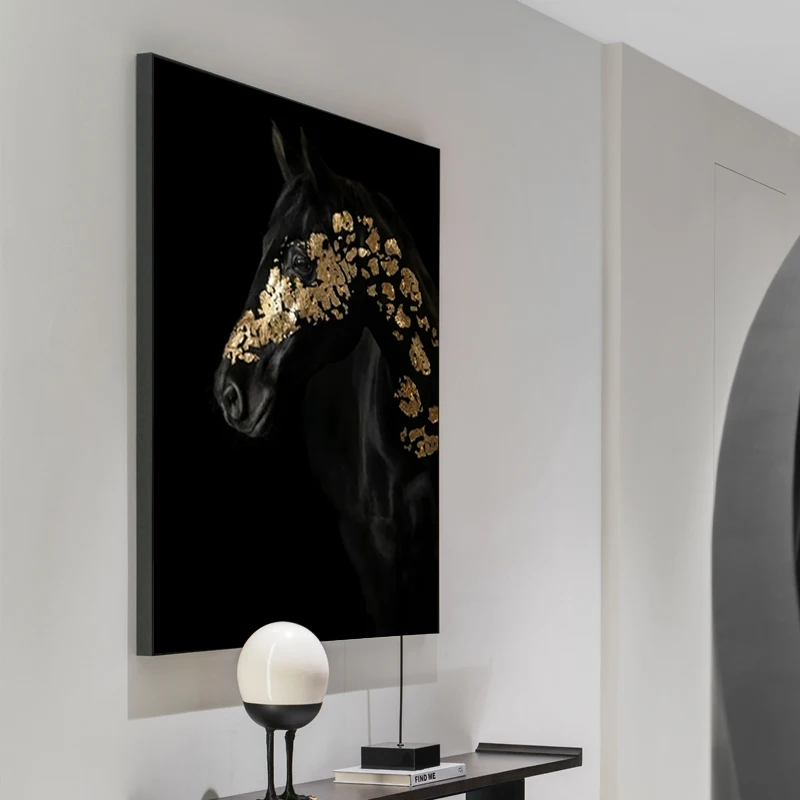 Животные Лошадь Черная и Золотая стена искусство холст живопись ска...