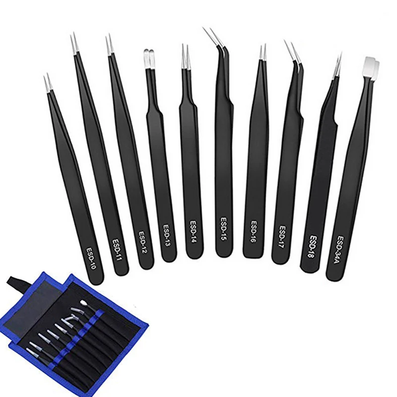 Набор прецизионных пинцетов, 10 шт., набор антистатических пинцетов...