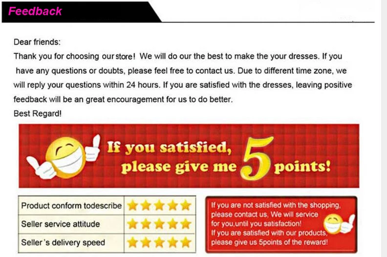4. Платье есть копии с веб-страниц, не совсем то же самое. Но мы стараемся сделать платье близко к фотографии.Мы не можем гарантировать 100% то же самое, поэтому, пожалуйста, покупайте рационально,Спасибо.