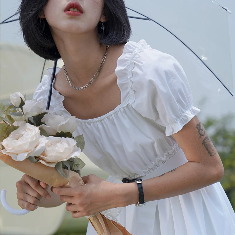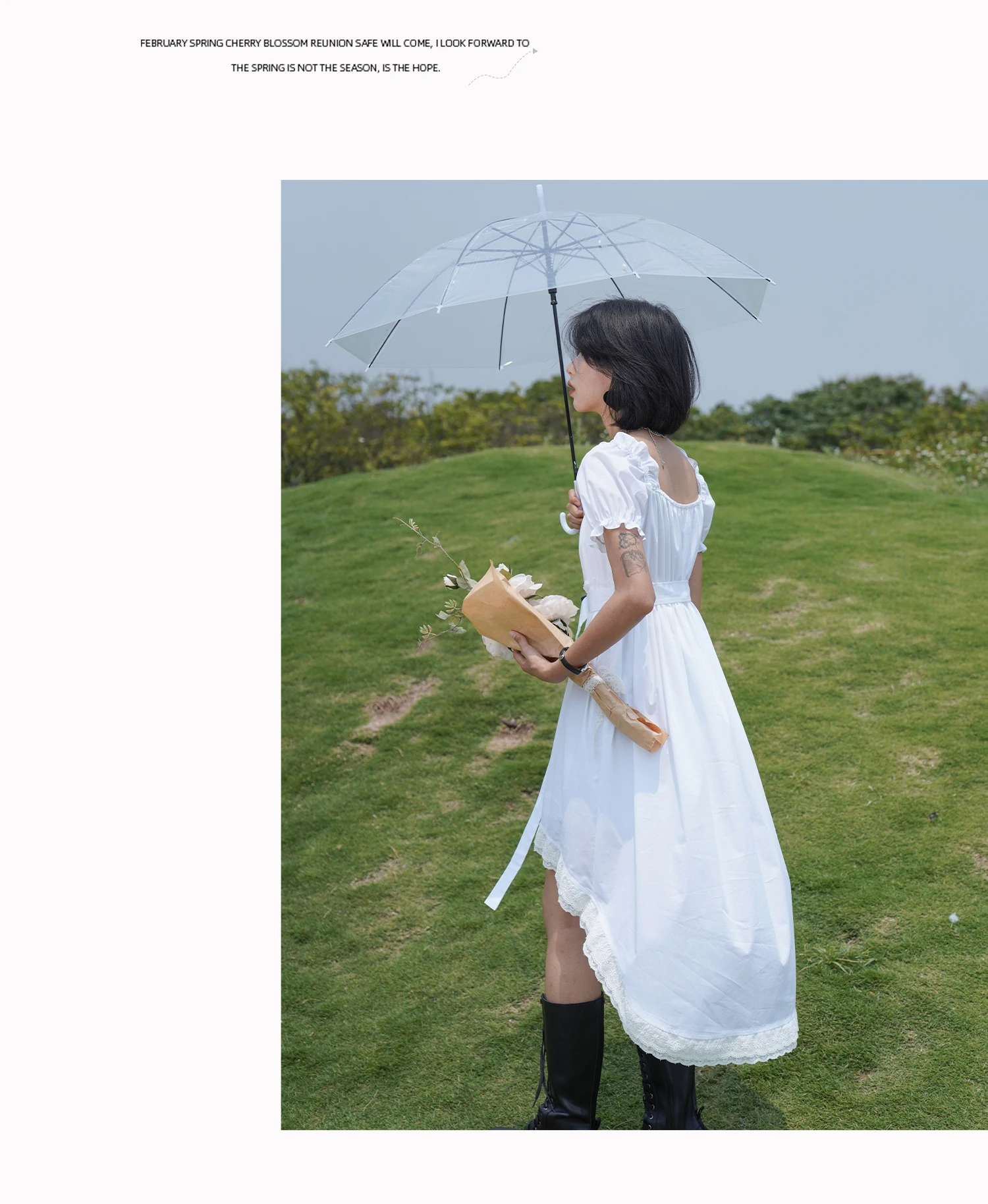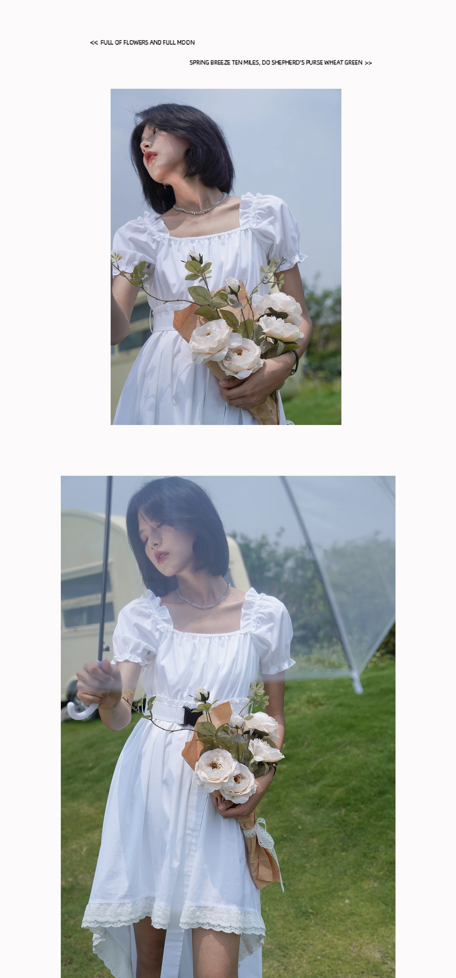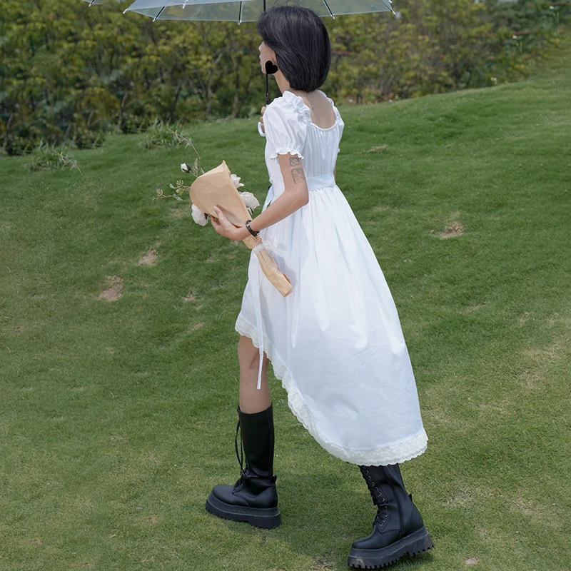 SHENGPALAE белое кружевное асимметричное платье для женщин Лето 2021 Новое платье до середины икры с квадратным воротником и коротким рукавом женское платье с поясом