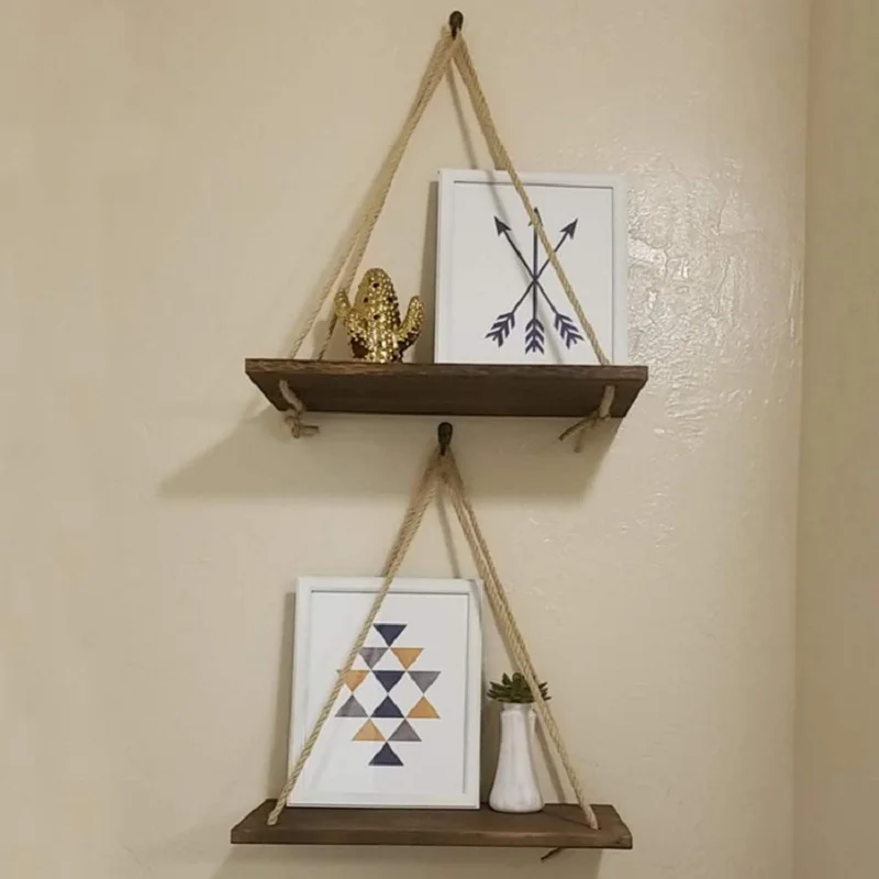 1 шт. деревянные настенные полки пеньковая веревка качели настенные Подвесные Растения цветочный горшок поднос Современный домашний декор простые дизайнерские полки