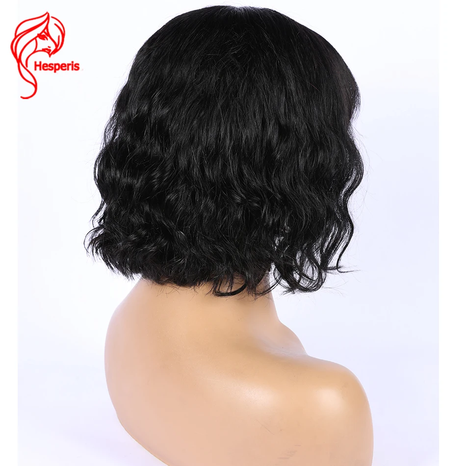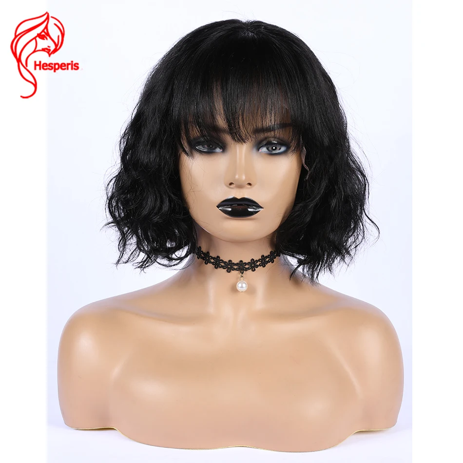 Hesperis короткие волнистые человеческие волосы, парики для чернокожих женщин, полноразмерные парики для кожи головы, бразильские волосы без повреждений, Короткие парики с челкой