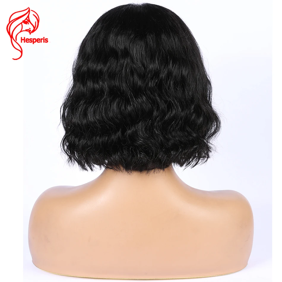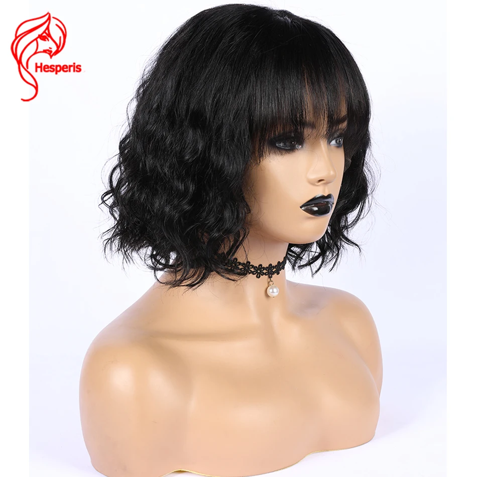 Hesperis короткие волнистые человеческие волосы боб парики для черных женщин полная машина головы топ парики бразильский Реми короткий стрижка боб парики с челкой