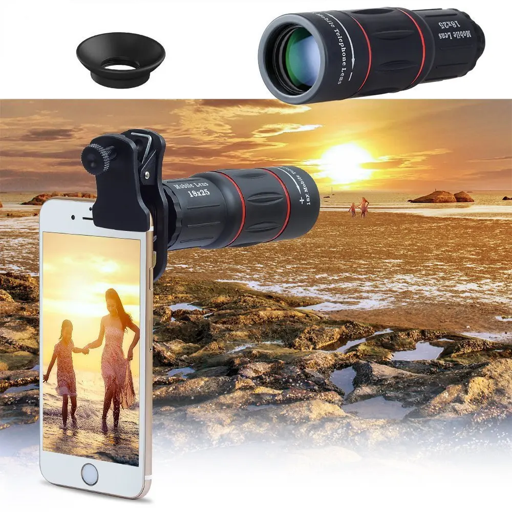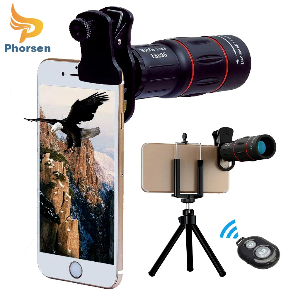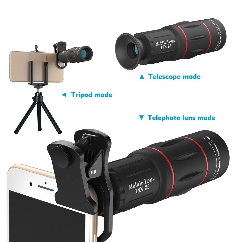 Универсальный комплект объективов для камеры телефона с зажимом для смартфона 18X телеобъектив, штатив, для iPhone Samsung и большинства смартфонов.