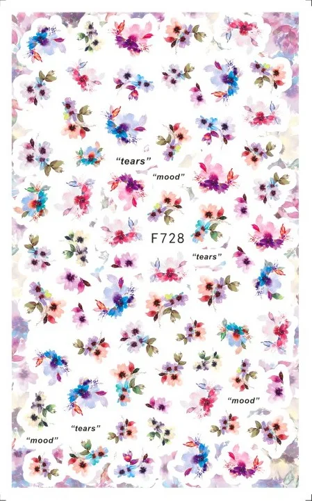Наклейки с цветами для дизайна ногтей, весна-лето, клей для накладных ногтей, 50 шт.