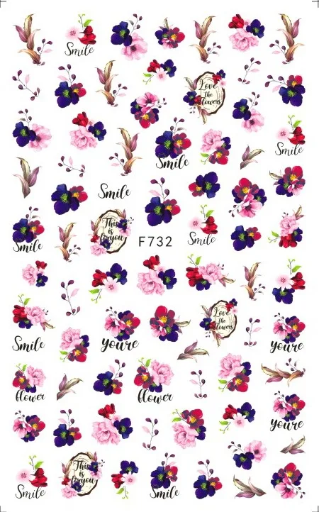 Наклейки для ногтей, самоклеящиеся, с 3d-изображением цветов и листьев