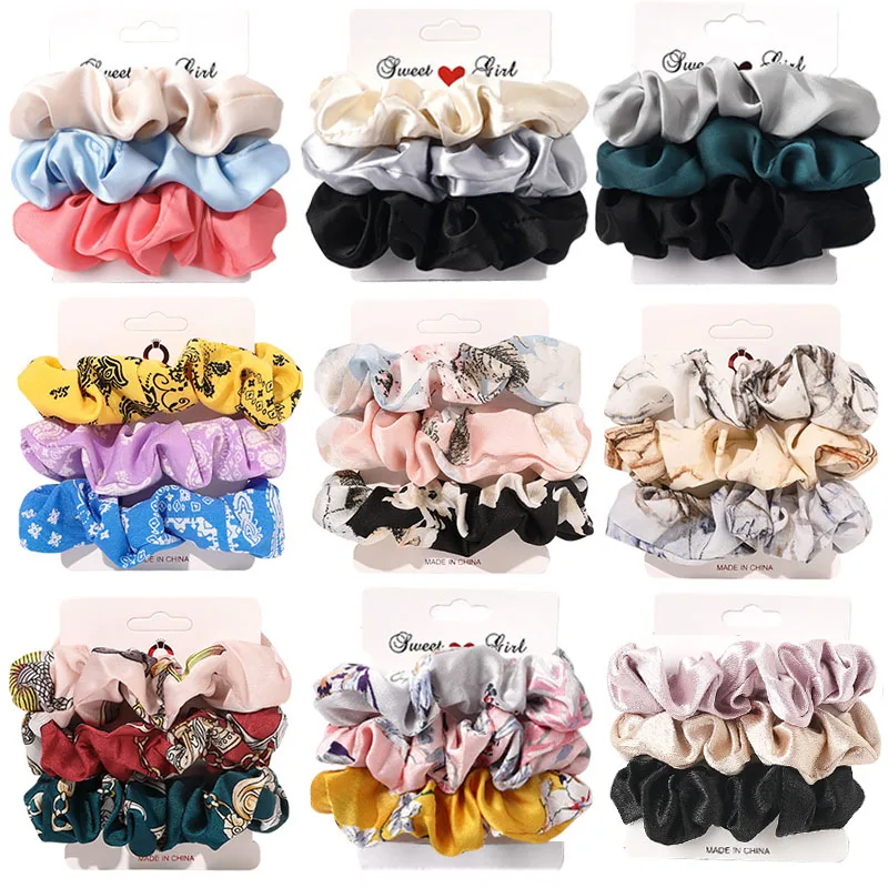 3 шт.компл. женские шелковые бархатные резинки для волос, однотонны...