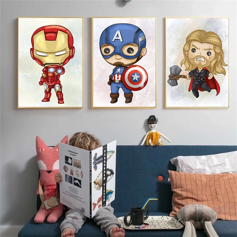 Супергерой Марвел детская Картина на холсте принты и плакаты мультф...