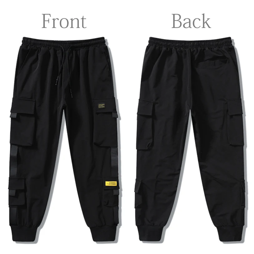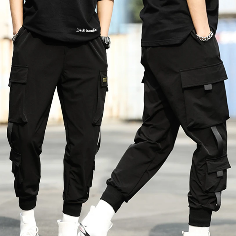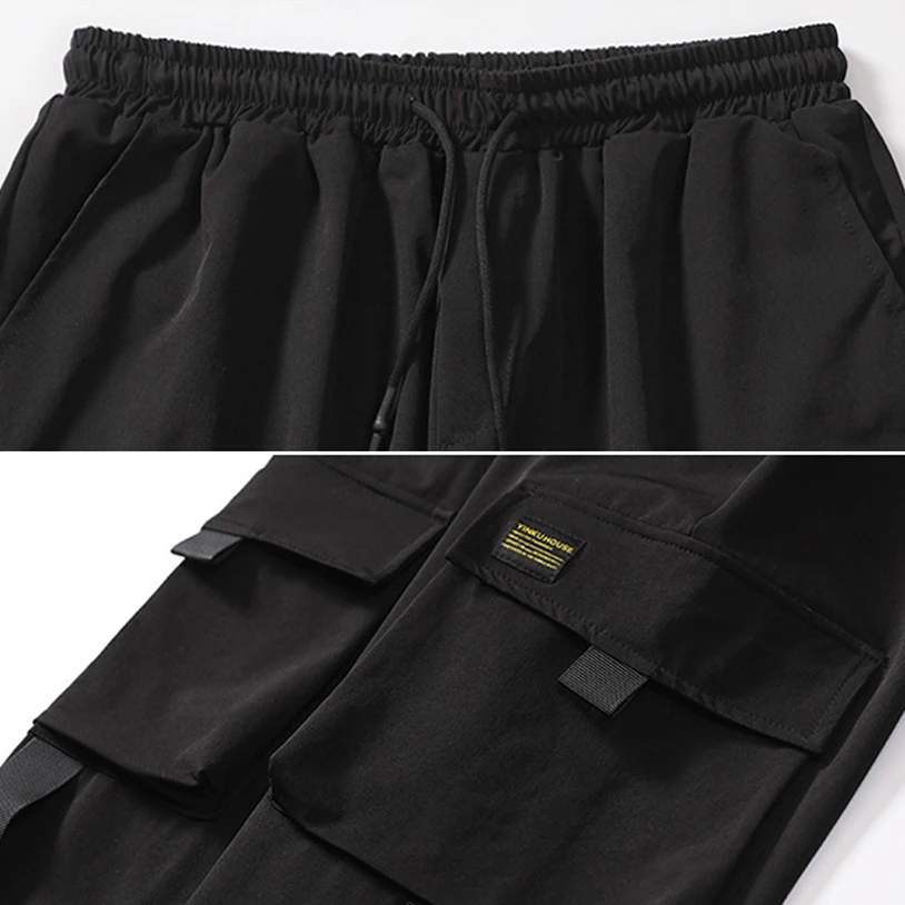 Мужские брюки-карго с эластичной талией, летние тонкие брюки с завязками, свободные шаровары, молодежные модные повседневные брюки на завязках