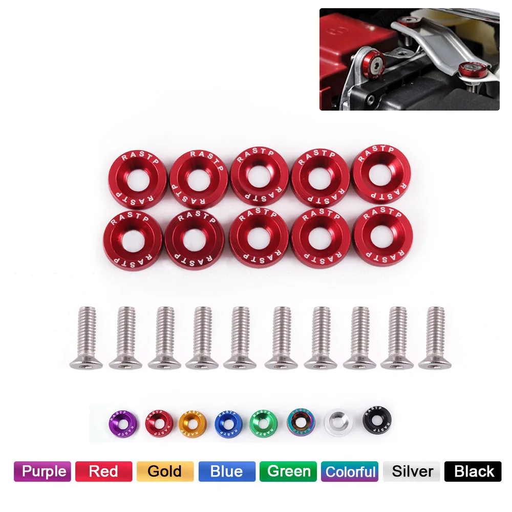 10 шт. Тюнинг автомобиля Универсальный шайба крыла бампер двигателя вогнутые jdm винты алюминиевые шайбы и M6 болт автомобильный винт RS-QRF002-TP