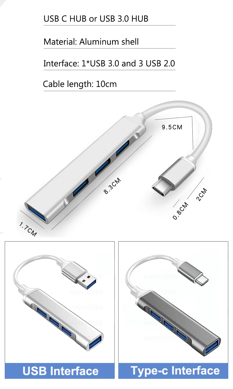 Интерфейс Type c или USBМатериал: алюминиевый корпусИнтерфейс: 1 * USB 3,0 и 3 USB 2,0