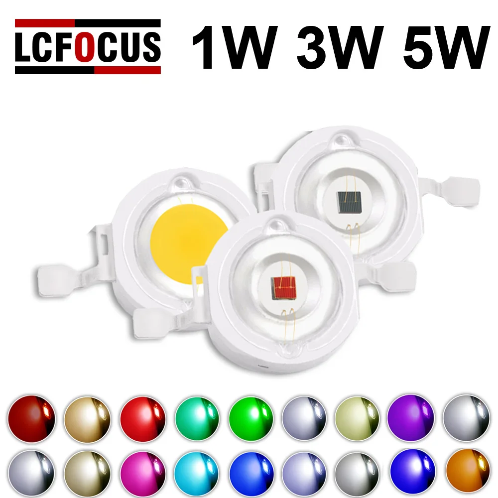 Светодиодный чип 1 Вт 3 Вт 5 Вт Теплый Холодный белый красный синий зеленый желтый Уфа Инфракрасный полный спектр COB лампа для роста ламп 135 Вт