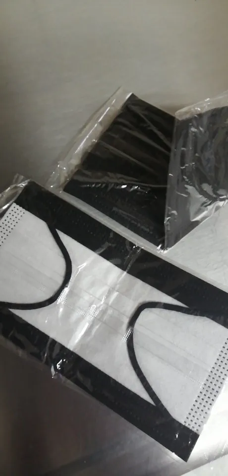 En esta entrega, todas las mascarillas son negras tanto del derecho como de del revés y son más finas, no me gustan. Prefiero como en el primer pedido que la cara interna es blanca y más gruesas. Pongo una fotografía para que se vea la diferencia.