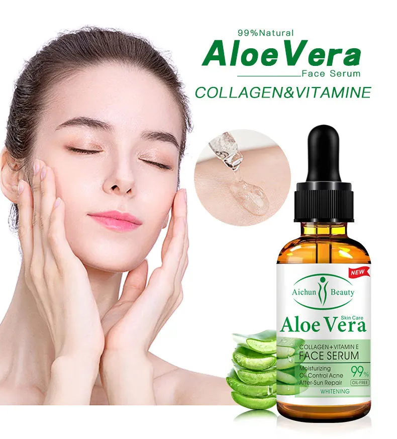 Алоэ вера, Коллаген увлажняющая эссенция для лица, Чистка Пор, усадка Антивозрастной уход за кожей решение для осветления морщин, уход за кожей лица Сыворотки