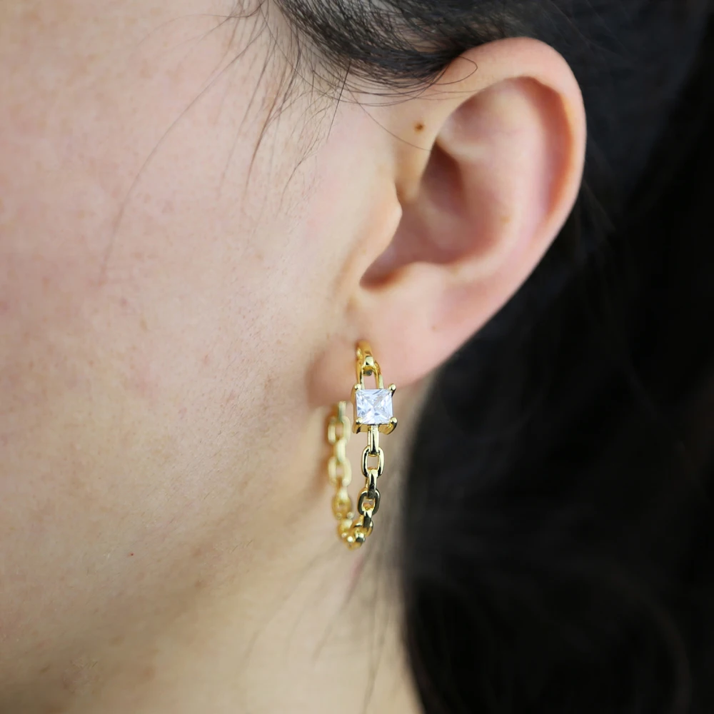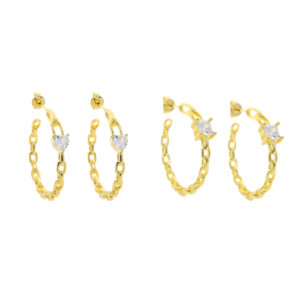Классические женские кольца золотого цвета, ювелирные изделия, Круглые Кольца с одним сердцем, квадратные серьги-кольца из кубинской цепи с фианитом