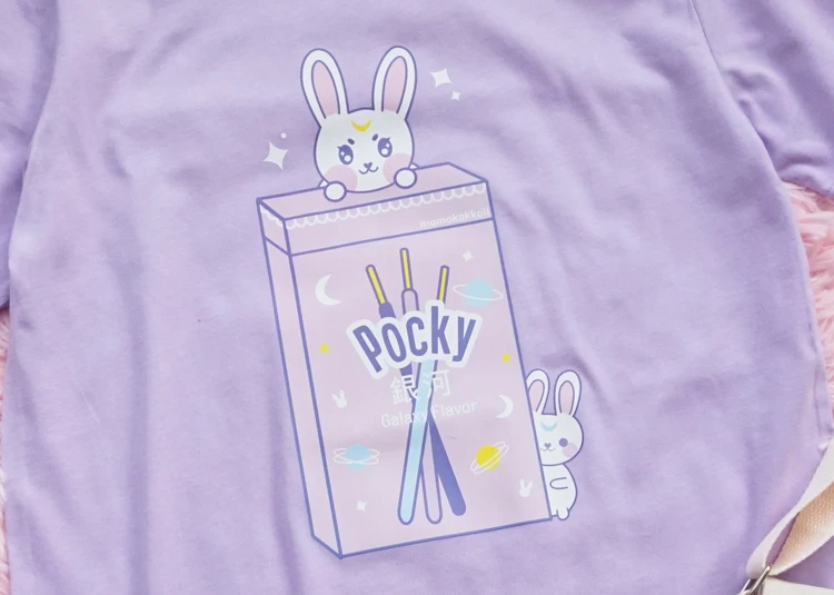 Японские мягкие летние фиолетовые топы с принтом кролика для девушек, винтажные школьные Топы JK, маленькие свободные милые футболки в стиле Харадзюку для студентов