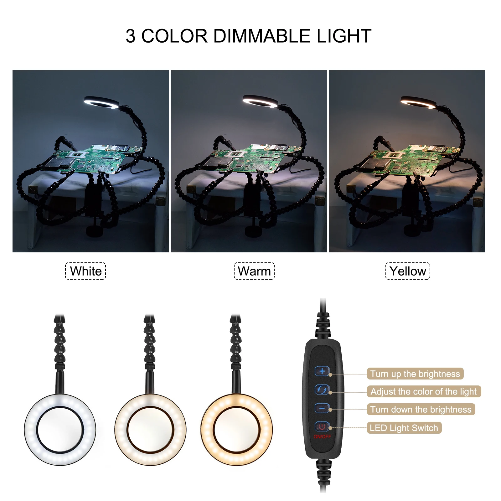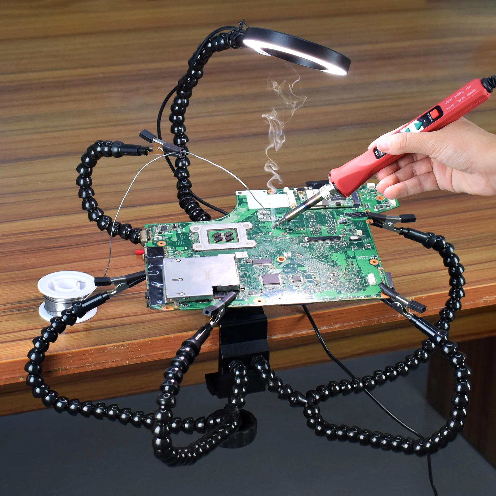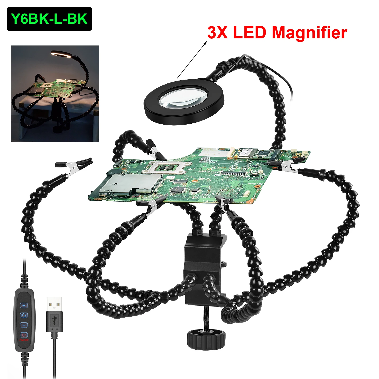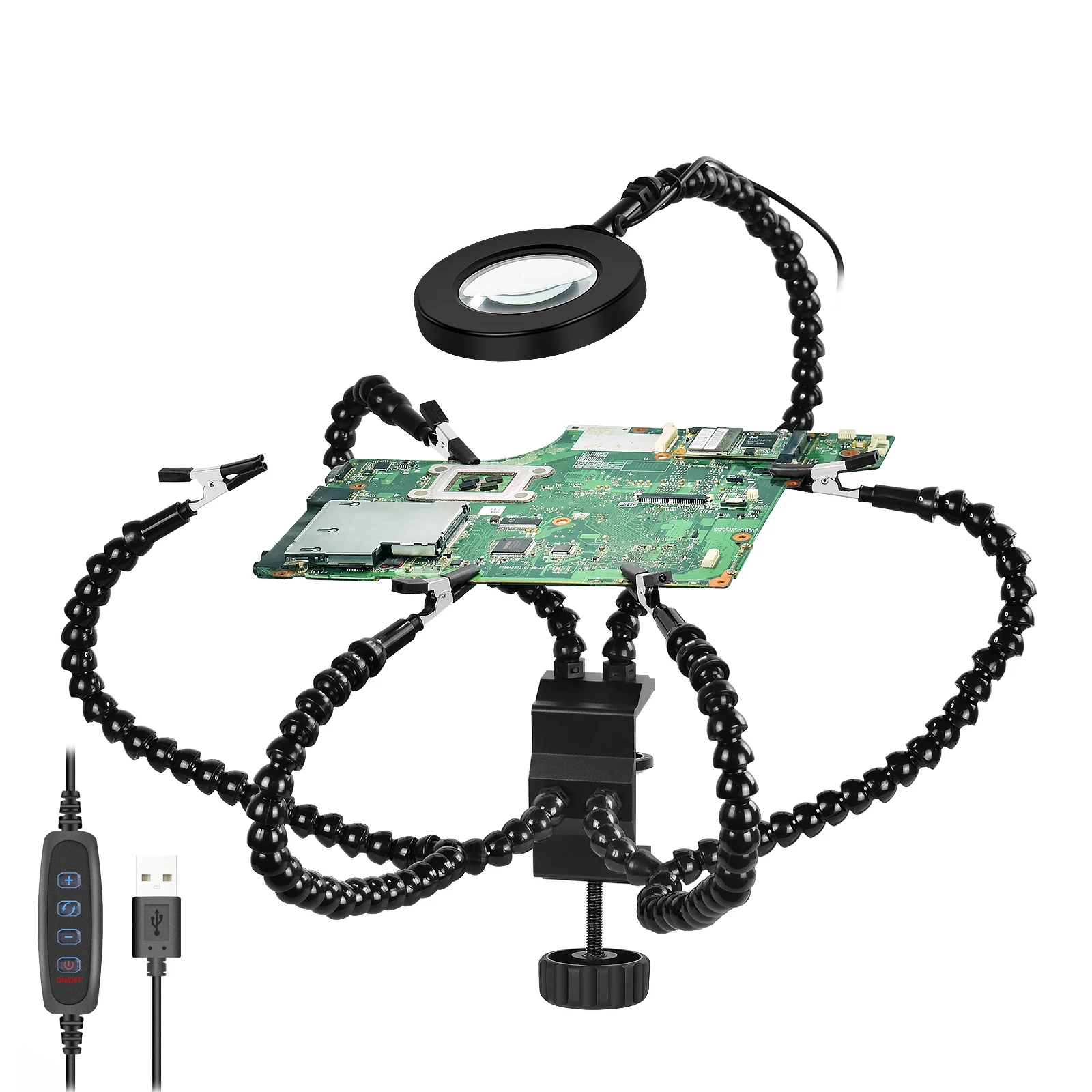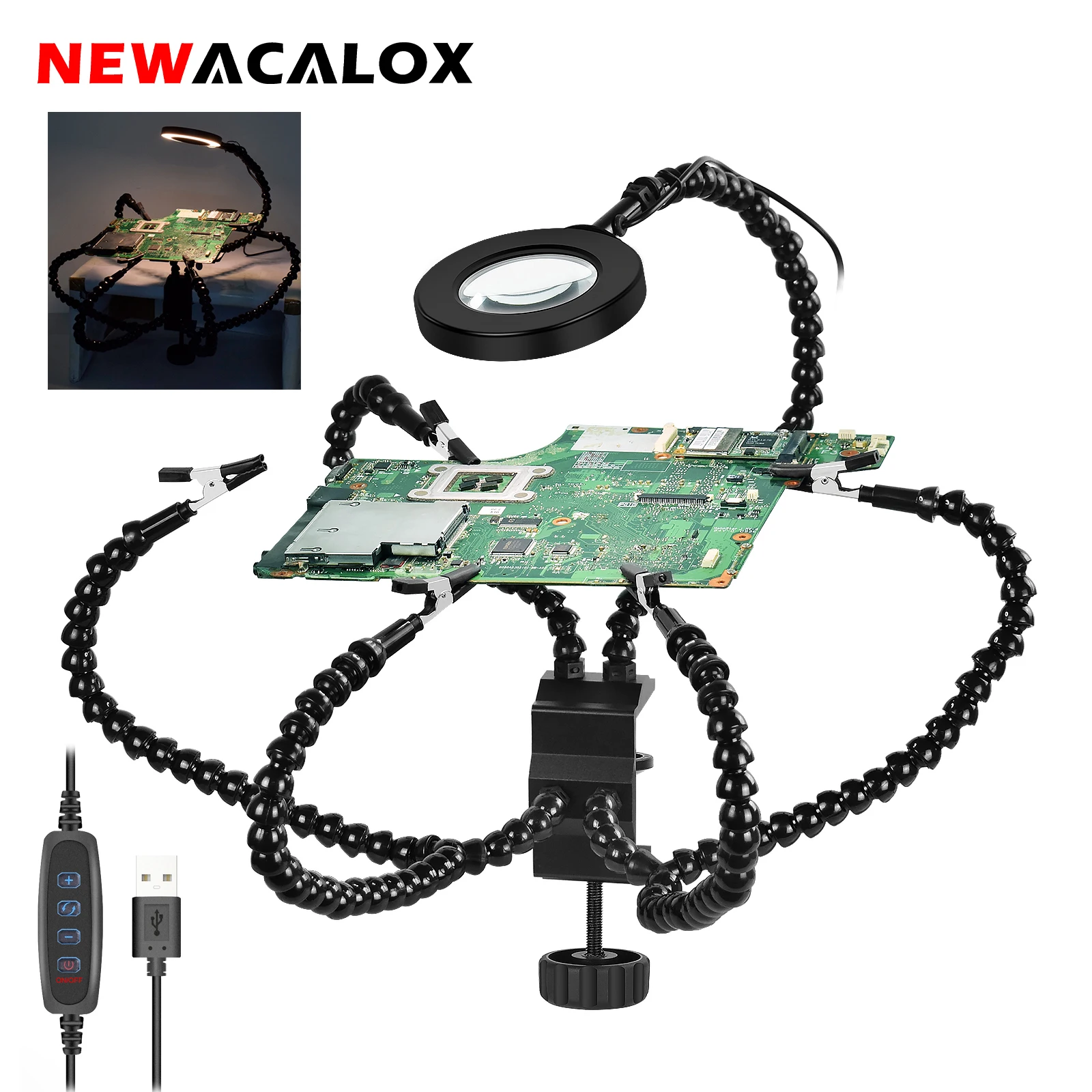 Инструмент для пайки печатных плат NEWACALOX, вспомогательные руки, 3X USB, светодиодное увеличительное стекло для пайки, ремонта, изготовления ювелирных изделий