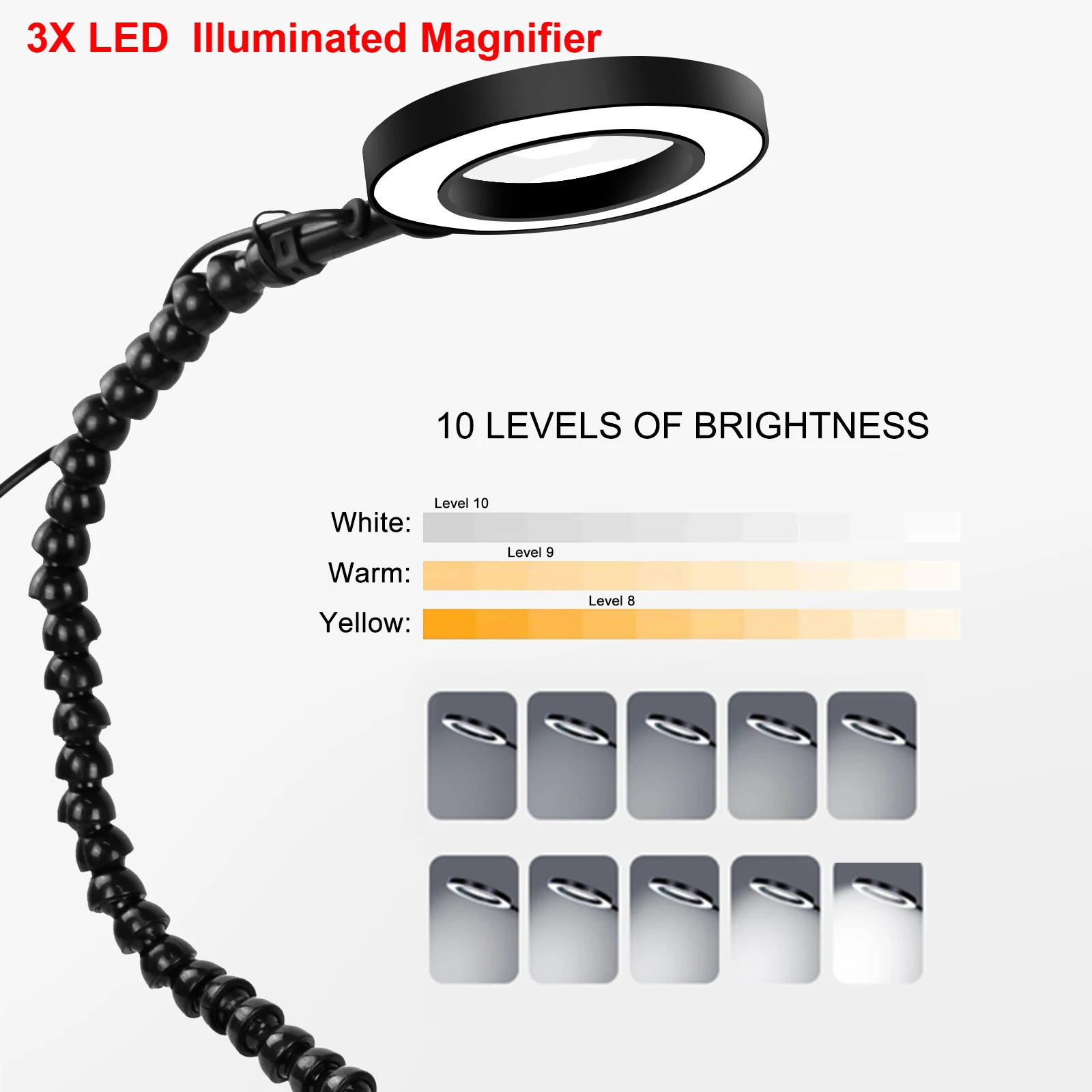 4. Увеличительное стекло светодиодный светильник кой, цветовую температуру светодиодный светильник да можно отрегулировать в 3 шага, а яркость можно отрегулировать в 11 шагов, она может соответствовать различным условиям работы.