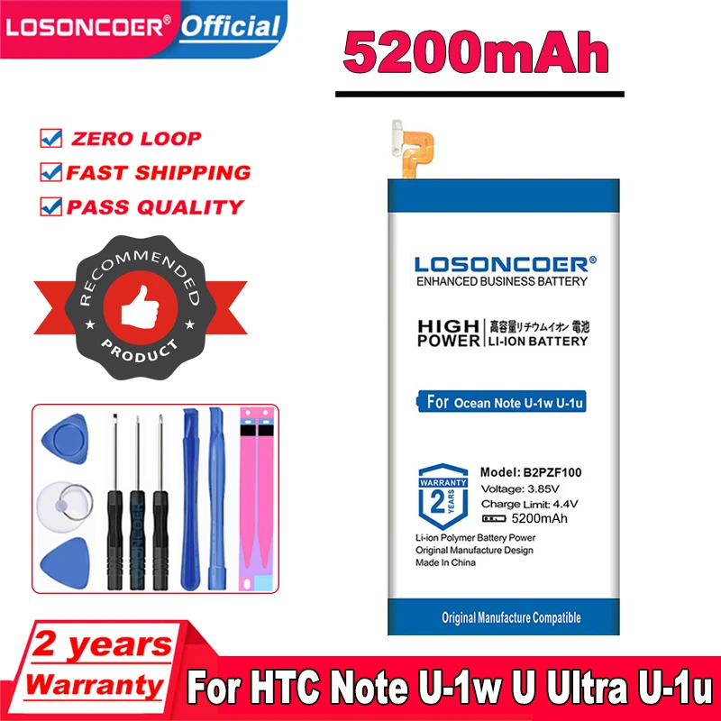 Аккумулятор для телефона LOSONCOER 5200 мАч B2PZF100 для HTC Ocean Note U-1w U Ultra U-1u, батареи для телефона, бесплатные инструменты, наклейки
