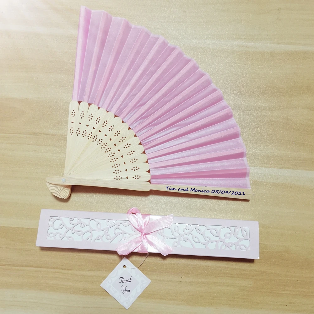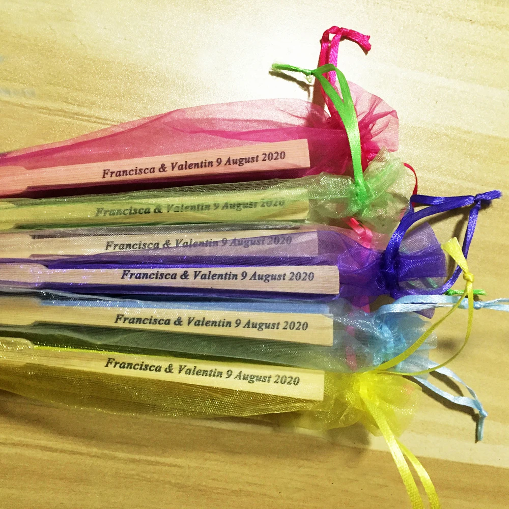 100 шт. изготовленные на заказ свадебные Веер Складной шелкография Жених и невеста имя и Дата с уникальным ручным бамбуковых подарок вентилятор